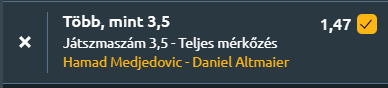 - Medjedovic eddig szépen menetelt, de most először találkozik olyan ellenféllel, aki képes lehet semlegesíteni a támadójátékát. Altmaier játéka ugyanis éppen arra épül, hogy visszaverje az agresszív próbálkozásokat, és hosszú labdamenetekbe kényszerítse ellenfeleit – ez pedig kulcs lehet a Medjedovic elleni mérkőzésen. Papíron Medjedovic az esélyesebb, de minimum egy szettet nyerni fog Altmaier, de simán benne van a meglepetés is!