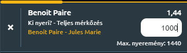 - Benoit Pairet TOP10-es játékos lehetne/lehetett volna, ha mentális téren nem ultragyenge! Ő ugyanis egy remek fizikai felépítéssel rendelkező, komoly ütőerővel és bitang tehetséggel megáldott játékos, akiből komoly teniszklasszis is lehetett volna! Rendkívül technikás, dinamikus játékos, aki egész egyszerűen beleszarik mindenbe, csak akkor teniszezik viszonylag jól, ha van kedve. Sokkal jobban szeret bulikázni, mint edzeni. Ennek ellenére komoly eredménysora van! 8 CH tornagyőzelem, ebből 6 kemény borításokon, valamint 3 ATP tornagyőzelem mind salakról. 2023-ban összekapta magát a szalállas gall, merthogy hosszú idő után két CH tornát is megnyert, egyet salakon és egyet keményen. Mégis mi motiválja őt? Hát elsősorban a pénzdíj, hiszen profi játékos, ebből él, ez a kenyérkereset. És egy GS táblára való feljutás komoly pénzdíjjal is jár, így azt gondolom, ma a szokásosnál összeszedettebb lesz. Akkor pedig behunyt szemmel is meg tudja verni Marie-t!