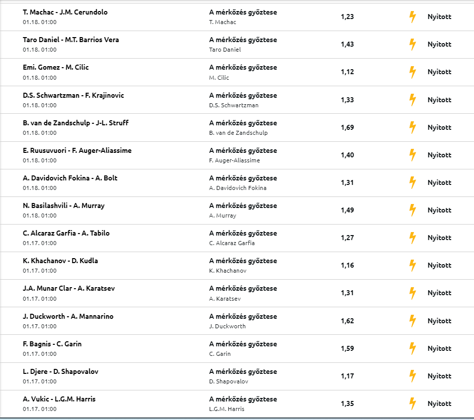 Az AO első hetében nem lesz Challenger-figyelő, meg más sem. Sok jó meccs lesz, a legjobbakról fogok külön írni kettőt-hármat, plusz egy szelvénycikk is lesz. A nőket kihagynám, inkább azt az időt is a férfimeccsek nyomozására fordítanám. A hölgyekkel kapcsolatban, kérlek segítsetek majd. Ebben a cikkben pedig az első kör összes meccsét vizslatva csináltam egy 15-meccses szelvényt, amelynek az eredője 95, egy ezrest dobtam rá.