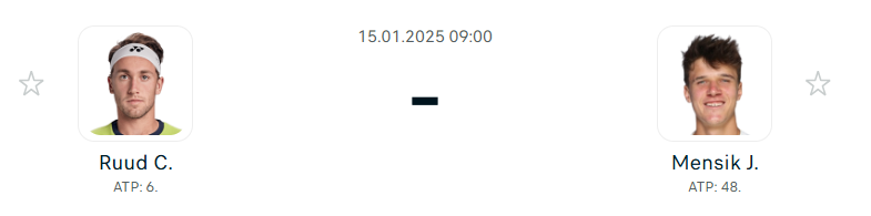 Szintén az Ausztrál Open kemény borításán, a torna második fordulójában a TOP10-es Casper Ruud (6.) és a fiatal kora ellenére már stabil TOP50-es Jakub Mensik (48.) találkoznak.