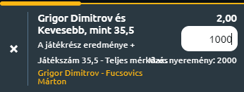 - A bolgár győzelme nagyon erős, de emellett a game-eket is ki lehet kombinálni. Egy szettre jó lehet Fucsovics, mármint, hogy nem nagyon kap ki, utána összeomlik. Nálam ez 7-5, 6-3, 6-2 kb. A tipp így 2,00-ért bőven vállalható. De őszintén mondom: Cáfoljon rám Fucsó és lássunk egy Marci-remeklést és magyar győzelmet! Ennek szurkolok, de az eszem mást mond.