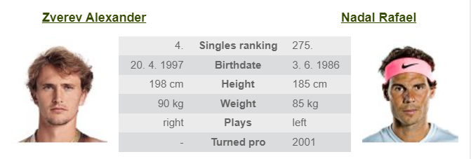 - Zverev két évvel ezelőtti horror-sérülése (szintén Nadal ellen játszott) már a múlté már. Kevés teniszező képes olyan borzalmas sérülésből, relatíve hamar visszatérni a TOPszintre, mint a német! Szegény Thiem már a felével is megelégedett volna. Zverev már megfelelően rutinos és profi ahhoz, hogy ne nyomassza őt az, hogy a tenisz legnagyobb királyával játszik (én is, ahogyan nagyon sokan a legnagyobbságot nem csak a Grand Slam tornagyőzelmek számában mérem), sőt talán még sokkal jobban ösztönzi is. De azt gondolom, hogy Garroson való játék esetében, bárki is legyen az ellenfél, teljesen mindegy, hogy ki áll a túloldalon mindenki maximálisan nyerni akar. Akinek a mentális-koncentrációs faktor nincs csúcsra járatva, az kiesik, akár sokkal gyengébb játékossal szemben is. Zverev pedig nem fogja elkövetni ezt a hibát.