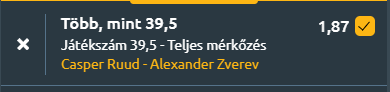 - Tipp2: Ruud nyer + több mint 40,5 game – 3,70
