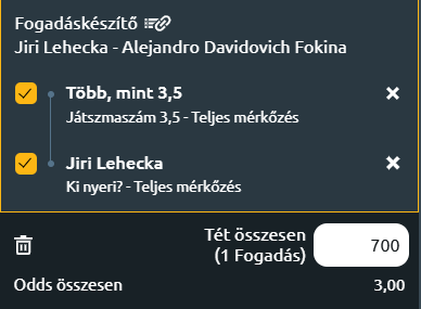 - Lehecka lendületben van, és meggyőzőbben teljesített az első fordulóban, talán még frissebb is, de Fokina salakos játékát nem szabad lebecsülni! Szoros, intenzív összecsapásra lehet számítani, de Lehecka jobb formája és meggyőzőbb nyitókörös produkciója alapján várható, hogy ő lesz a kezdeményezőbb fél, és jó eséllyel tovább is jut, de nem lesz sima három szett, az overre is lehet fogadni!