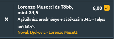 - Azt gondolom, meg lehet próbálni azt, hogy tétemeléssel (mondjuk a fibonacci) elkezdjük Djokovic ellenfeleit nyeretni úgy, hogy kombiban az overt is kötjük hozzá! Próbáljuk meg! Ma 6,00-os szorzót kapunk hozzá.
