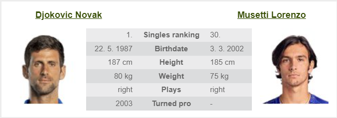 Novak Djokovicnak eddig könnyű dolga volt, mindkét meccsét könnyedén-, három szettben lehozta. De most nehezebb feladat vár rá, a salakspecialista, tehetséges Lorenzo Musetti vár rá.