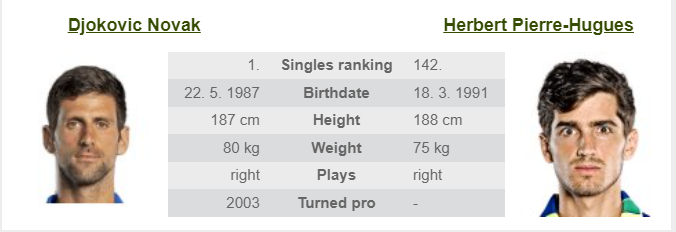 - Nos. Herbert még fénykorában sem lehetne ellenfele a mostani Djokovicnak sem. Ezért azt gondolom, hogy „inasba” lesz rakva alaposan, ahogy itt a fórumban mondani szokták.