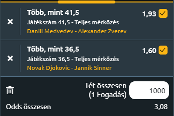 - Zverev és Medvedev pedig nagyon meg fogja gyötörni egymást! Két rendkívül agresszív játékos, Medvedev talán kissé statikusabb, sokkal inkább az alapvonalra van ragadva, viszont a szervája és tenyerese rendkívül jó. Zverev támadó teniszt játszik folyamatosan, ha kell felmegy habozás nélkül a hálóhoz is. Ma kelleni fog, mert Medvedevet alapvonalon rendkívül nehéz megverni, de a hálónál van rá esély. Tőlük minimum 42 game-et várok.