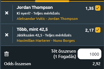 - A biztos győzelmet pedig Jordan Thompsonnak adom, aki egyrészt ausztrál, másrészt remek formában van az év elején! Ő verte meg Nadalt Brisbane-ben, ahol elődöntőt játszott. Ráadásul kétszer játszott eddig Vukiccsal kemény borításon, mindkétszer megverte. Ma is meg fogja.
