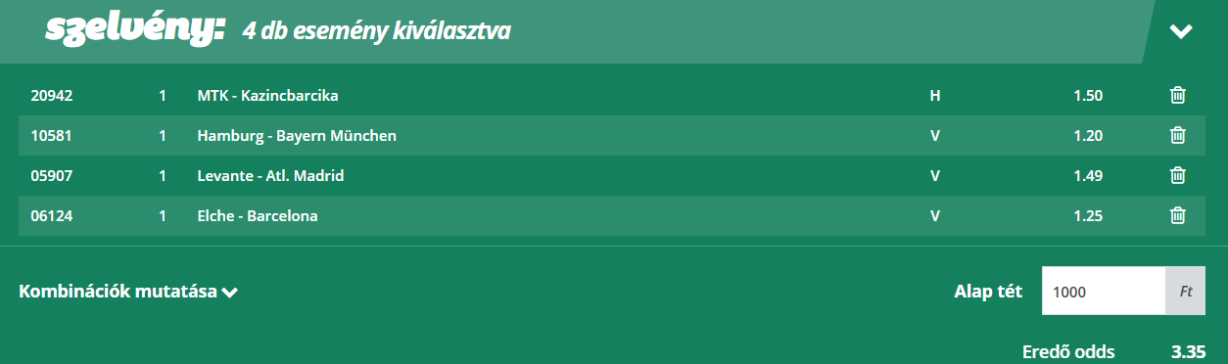 Az olvasók kedvenc rovatában vegyes szelvényeket próbálunk összehozni, amelyben két-három mérkőzést kombinálunk majd egy ajánlatba. Az eredő szorzó 3,2 és 3,9 között van a meccskínálat függvényében. Ezek a szelvények kiválóan alkalmasak Fibonacci stratégiára, bankrollmenedzsmenttel kombinálva. Fosszuk ki az irodákat együtt!
