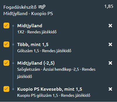 - A Midtjylland alakulatát jobbnak tartjuk, így húzzuk a H-t és az 1.5 overt. Emellett 3-mal több dán szögletet várunk, és arra nem gondolunk, hogy a finnek kétszer is beköszönnének az odavágón!