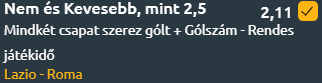 A legutóbbi 6 egymás elleni bajnokin 2 Roma-siker, 2 Lazio-diadal és 2 döntetlen született. Ezeken a meccseken csak 7 gól esett, épphogy legalább 1 gól/meccs. Ezek a meccsek nagyon nehezen nézhetők, nem élvezhetők, ezért más megfontolásokat kell figyelembe venni fogadásnál.
