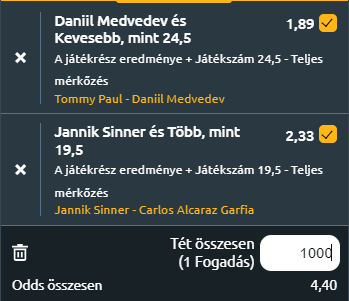 - Titánok csatája. Ez a két játékos játssza a leggyorsabb teniszt jelenleg az ATP Touron. Az olasz rengeteget fejlődött, igazi nagyágyú lett belőle. Idén még nem kapott ki! Hamarosan ő lesz a világelső, már csak idő kérdése. Carlos Alcaraz szerencséje az, hogy az Indian Wells-i torna lassabb, így valamivel szelídül Sinner bődületes tenyerese és adogatása. A spanyol rendkívül technikás és remek az a képessége, amivel olvasni tudja a játékot. Ez az év már inkább az ő párharcukról szól majd. Ezen a meccsen az over mindenképp erős tipp, de szerintem az olasz jelenleg jobb formában van!