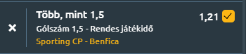 - Tipp 1: Több mint 1,5 gól a mérkőzésen – 1,21