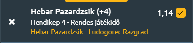 - Tipp1: 4-0-ás hendikepről hazai (tehát 3-0-ás Ludogorec győzelem is jó a tippnek) – 1,15
