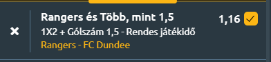 - Tipp1: Rangers nyer + több mint 1,5 gól a mérkőzésen – 1,16