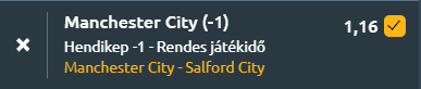 Tipp: ManCity -1 hendikep nyer – 1,16
