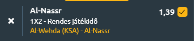 Mára az Al Wahda – Al-Nassr szaúdi bajnokit választottam. Szelvénytipp következik!