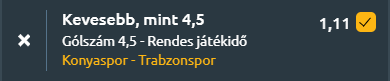 Tipp: Kevesebb, mint 4,5 gól a meccsen - 1,11