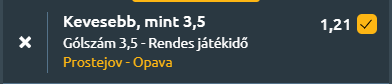 - A két csapat korábbi mérkőzései alapján szoros, taktikus párharcra van kilátás, várhatóan kevés góllal. A Prostejov felemásan kezdett. A szezonban eddig egy győzelmet és egy vereséget könyvelhettek el, miközben 1,5 gólt szereznek átlagosan meccsenként, és csupán 1 gólt kaptak. Az előző fordulóban meggyőzően, 3–1-re győzték le a Chrudim csapatát, ami lendületet adhat a soron következő találkozókra, így mára is. A gárda magabiztosan várhatja a Opava elleni összecsapást, hiszen az utóbbi öt egymás elleni meccsből hármat megnyert, kettő döntetlenre végződött, míg vereséget nem szenvedtek. Ezeken a találkozókon 1,6 gólt szereztek átlagban, ami erőteljes támadópotenciált jelez a riválissal szemben. Csakhogy az Opava veretlenül kezdte a bajnokságot két győzelemmel. Az eddigi teljesítményük kifejezetten meggyőző, 2 gólt szereznek meccsenként, miközben még gólt sem kaptak. Legutóbbi mérkőzésükön 3–0-s diadalt arattak a Ceské Budejovice felett, kifejezetten jó formában vannak! A két csapat utóbbi tíz-tíz meccséből hét alkalommal is 2,5 gól alatti eredmény született. A statisztikák alapján tehát egy visszafogott, taktikusan megvívott mérkőzésre van kilátás, ahol a Prostejov hazai pályán, korábbi közvetlen eredményeik birtokában enyhe lélektani előnnyel indul, ugyanakkor az Opava idei veretlensége és kapott gól nélküli mutatója is komoly tényező. Az esélyek alapján tehát egy alacsony gólszámú, szoros mérkőzés várható, aminek a kimenetele kérdéses, ám a gólok tekintetében nem várható háromnál több!