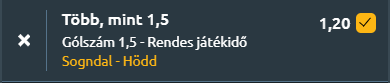 Tipp: több, mint 1,5 gól a meccsen – 1,20