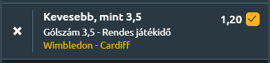 - Az angol League One negyedik fordulójában az AFC Wimbledon hazai pályán fogadja a Championshipből kieső, de oda azonnal visszajutni szándékozó Cardiff City csapatát. A cardiffi szakvezetés ennek a szándéknak megfelelően egyben tartotta a keretet, amely igencsak masszív a League One szintjén! A vendégek eddig veretlenek a bajnokságban, két győzelemmel és egy döntetlennel a 2. helyen állnak. Átlagosan 1,67 gólt szereznek és mindössze 0,33 gólt kapnak, tehát kifejezetten erős a védekezésük! Az előző fordulóban magabiztosan, 3–0-ra győzték le a Rotherham Unitedet, előtte becsúszott egy 0-0-ás döntetlen a Port Vale otthonában. Nézzük a wimbledoniakat! Három forduló után a 10. helyen állnak a bajnokságban, két győzelemmel és egy vereséggel. Az eddigi szezonban átlagosan 1,33 gólt szereztek mérkőzésenként, miközben 0,67-et kaptak, vagyis viszonylag stabil védekezés és visszafogott támadójáték jellemzi őket, legutóbb idegenben 2–1-re verték a Readinget. A Wimbledon egy szervezett, fegyelmezett csapat, amely nem enged sok lehetőséget ellenfeleinek, de ritkán játszik gólgazdag meccseket. Összegezve tehát elmondható, hogy két remek védelemmel bíró alakulat talákozik, a meccs kiegyenlített lesz, ahol nem várható 3,5 gólnál több!