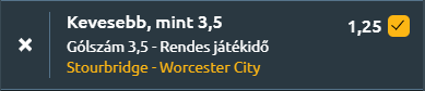 Tipp: Kevesebb, mint 3,5 gól a mérkőzésen – 1,25