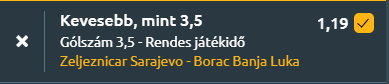- A bosnyék Premier Liga mai játéknapján a Zeljeznicar hazai körülmények között fogadja a Borac Banja Luka csapatát. A két élcsapat közvetlen riválisként csap össze, hiszen jelenleg az első és a második helyen állnak a bajnokságban, így minden adott egy remek mérkőzéshez. A Zeljeznicar még nem szenvedett vereséget, mérlege három győzelem és három döntetlen. Csapata stabil védekezésére épít, amit jól mutat, hogy eddig átlagosan mindössze 0,33 gólt kapott mérkőzésenként, miközben saját maga átlagosan egy találatot szerzett. Legutóbb a Sloga Doboj ellen gól nélküli döntetlen született, ami ismét a csapat masszív védekezését igazolja. A Borac Banja Luka szintén veretlenül érkezik a találkozóra, és jelenleg a tabella élén áll, ráadásul egy meccsel kevesebbet játszottak. Az eddigi öt mérkőzéséből négyet megnyert és egy döntetlennel zárt, ráadásul kimagasló támadóerejét mutatja, hogy átlagosan 3,6 gólt szerzett meccsenként, miközben mindössze 0,6 gólt engedett ellenfeleinek. A Zeljeznicar rendkívül szervezetten védekezik, és rendre alacsony gólszámú meccseket játszik. Mivel a hazaiak stabilitásra építenek, és a vendégek is tisztában lesznek a tét nagyságával, a találkozó inkább szoros, feszült és kevés gólos küzdelmet ígér, ahol a három és fél gól alatti végkimenetel a legvalószínűbb forgatókönyv.
