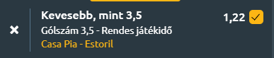 Tipp: Kevesebb, mint 3,5 gól – 1,22