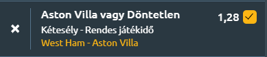 Mára a West Ham United - Aston Villa Premier Liga-meccset hoztam, szelvénytipp érkezik.