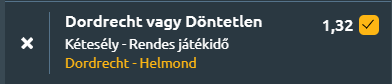 Mára a Dordrecht - Helmond holland másodosztályú meccset hoztam, szelvénytipp következik!