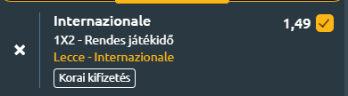 Mára a Lecce - Inter bajnokit hoztam, szelvénytipp következik.