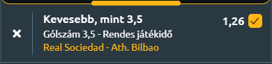 Tipp: kevesebb, mint 3,5 gól a meccsen – 1,26