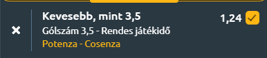 - A langyosvíz középmezőny tagja, a Potenza a negyedik helyezett Cosenzát látja vendégül. A Potenza Calcio március 1-jén 0–1-re kikapott a listavezető Beneventótól, de az azt megelőző öt mérkőzésén csak egyszer maradt alul, két győzelem és két döntetlen mellett. Ebben az időszakban meccsenként 1,6 gólt szerzett és 1,0-t kapott, ami stabil, versenyképes csapat képét mutatja. A szezonmérlege 9 győzelem, 10 döntetlen és 10 vereség, 1,3-as rúgott és 1,4-es kapott gólátlaggal, ami a 10. helyre elég az olasz harmadosztály C-jelű csoportjában. A Cosenza jó formában érkezik, hiszen 3–2-re verte a Sorrentót, az elmúlt öt fordulóban pedig háromszor nyert, egyszer döntetlent játszott és egyszer kikapott. Meccsenként 1,4 gólt szerez és 1,0-t kap ebben a periódusban, a teljes idényben 14 győzelem, 8 döntetlen és 7 vereség a mérlege, 1,5-ös rúgott és 1,1-es kapott gólátlaggal, ami a 4. helyet indokolja. Idegenben azonban kevésbé meggyőző: az utóbbi 13 túrából három végződött 0,5 gól alatti eredménnyel, és az under 0,5 az elmúlt tíz meccséből kettőn is előfordult. Szoros, kifejezetten kiegyenlített mérkőzés várható, kevesebb, mint 3,5 góllal.