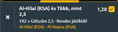 Tipp: Al-Hilal nyer és több, mint 2,5 gól a meccsen – 1.28