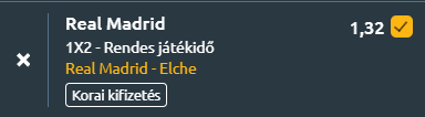 - A bajnoki címért üldözőversenyt futó Real Madrid szombat este a Santiago Bernabéuban fogadja a kiesés elől menekülő Elchét. A madridiak győzelem esetén egy pontra közelíthetik meg az éllovas Barcelonát. A Real Madrid kiváló hangulatban várhatja a találkozót, miután a Bajnokok Ligája nyolcaddöntőjének első mérkőzésén parádés játékkal 3–0-ra legyőzte a Manchester Cityt. Ez a győzelem mindenképp ösztönzőleg hat a bajnokságban is! A La Ligában Álvaro Arbeloa együttese legutóbb 2–1-re múlta felül a Celta Vigót. A fővárosiak jelenleg a második helyen állnak, négy ponttal lemaradva a címvédő Barcelona mögött, ezért különösen fontos számukra a három pont megszerzése. Hazai pályán ugyan ebben az idényben már kétszer is vereséget szenvedtek a ligában, így nem vehetik félvállról az ellenfelet. Az Elche nem túl jó formában érkezik Madridba. A csapat legutóbb 2–1-re kikapott a Villarrealtól, és azóta sem tudott győzni, hogy 2025 utolsó mérkőzésén pályára lépett, így a 2026-os év eddig kifejezetten nehéz számukra. Éder Sarabia együttese 27 bajnokin öt győzelmet, 11 döntetlent és 11 vereséget gyűjtött, ami 26 ponttal a 17. helyre elég a tabellán. Előnyük mindössze egy pont a már kieső helyen álló Mallorca előtt, így a bennmaradásért folyó harc az idény hajrájában különösen élessé válhat. Az Elche frissebben érkezhet, hiszen a Real Madrid a hét közepén nagy iramú Bajnokok Ligája-mérkőzést játszott a Manchester City ellen. A madridiak hazai ereje azonban döntő lehet, és a motivált és önbizalommal megtelt Real megveri az Elchét.