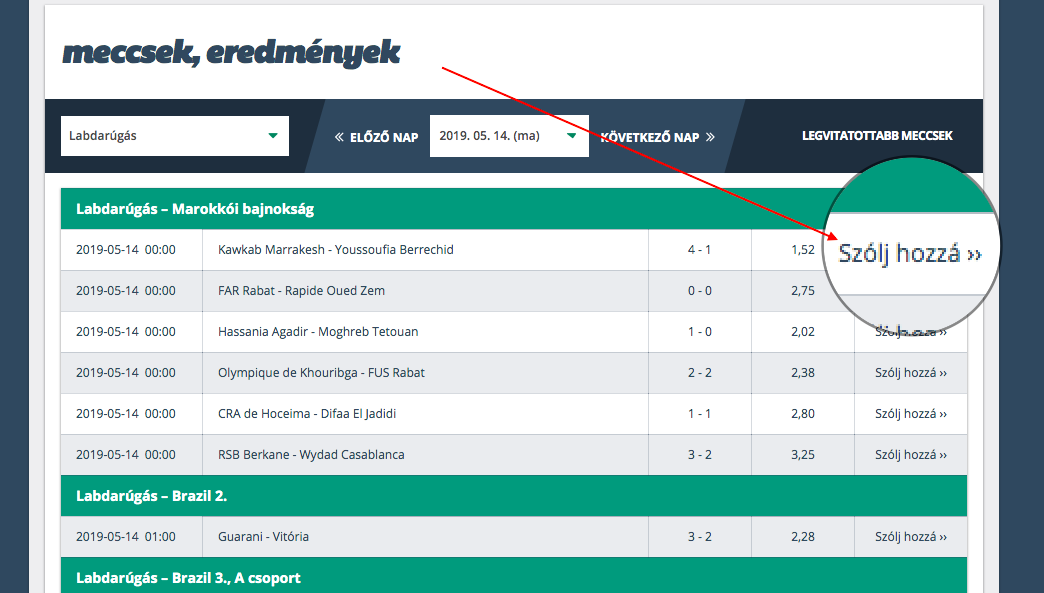 Ha a Tipplap felső menüsorában a MECCSEK gomb fölé viszed a kurzort, kijön egy újabb menüsor, ahol a MAI MECCSEK-et, illetve a HOLNAPI MECCSEK-et lehet kilistázni. Ez lesz új játékunk játéktere!